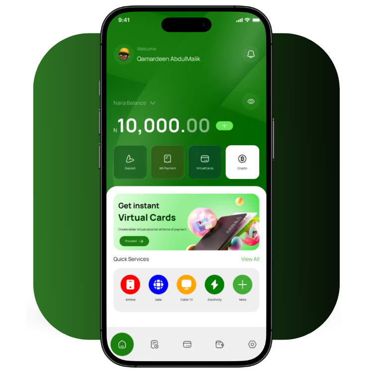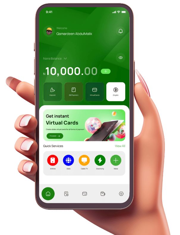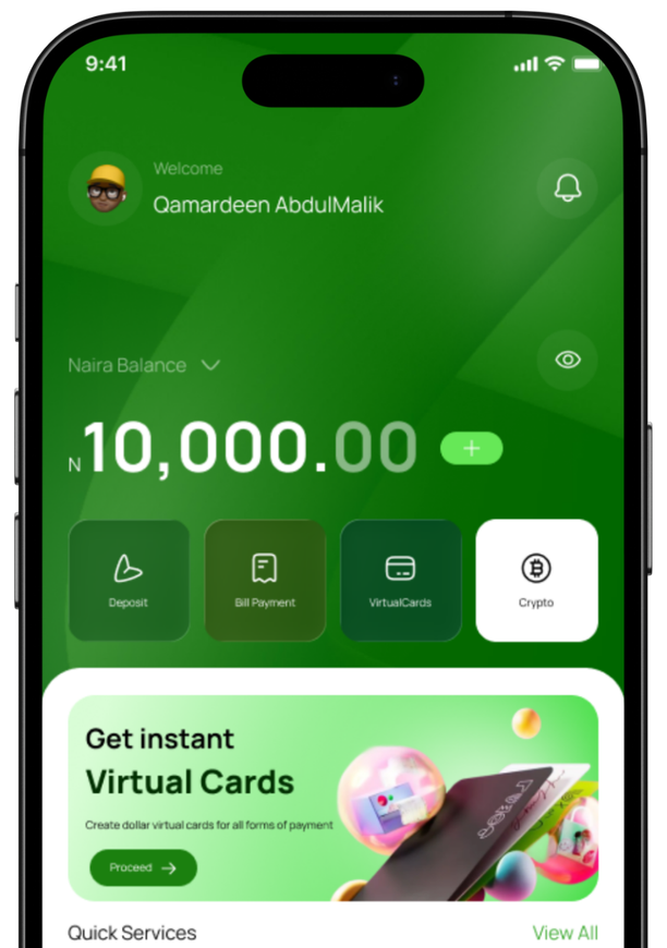 Create an account in minutes and access bill payments, USD virtual cards, and crypto trading—all from one app.